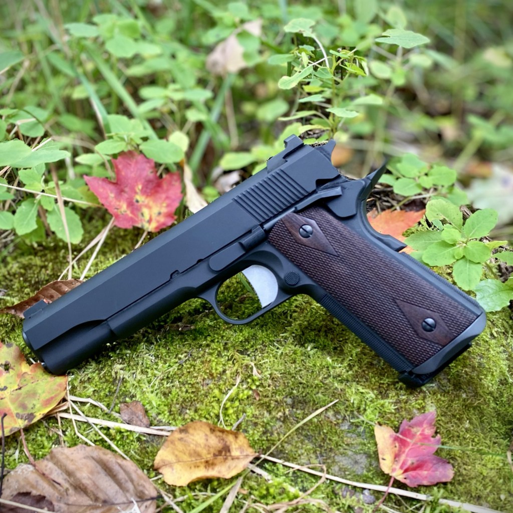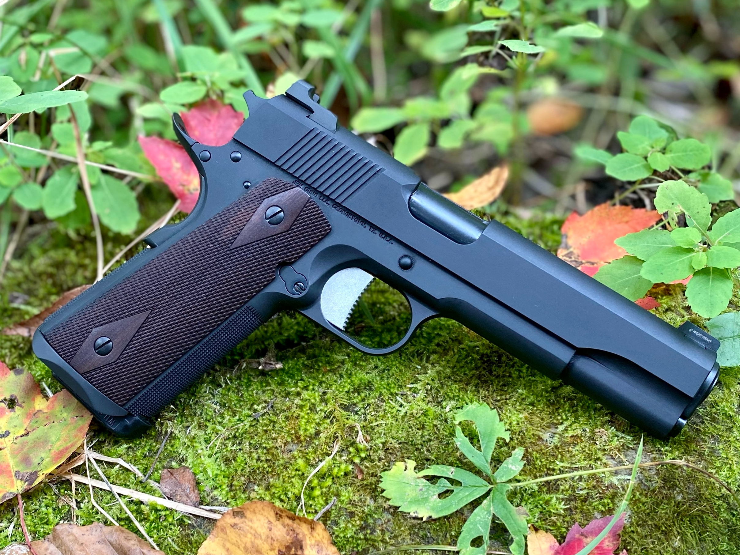 Featuring a bobbed spur hammer, rear cocking serrations, and double diamond checkered wood grips on a parkerized finish.