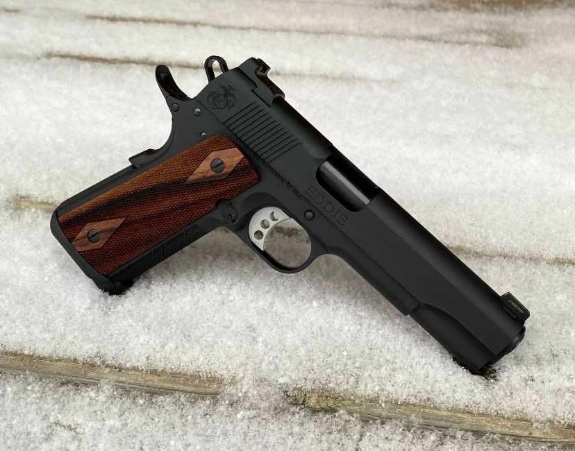 This project blends classic 1911-A1 features with modern enhancements, including a matte DLC black finish on the exterior and polished internals. The slide, personalized with laser engraving, adds the perfect finishing touch to this impressive gift for the fortunate USMC Veteran recipient (Korea).