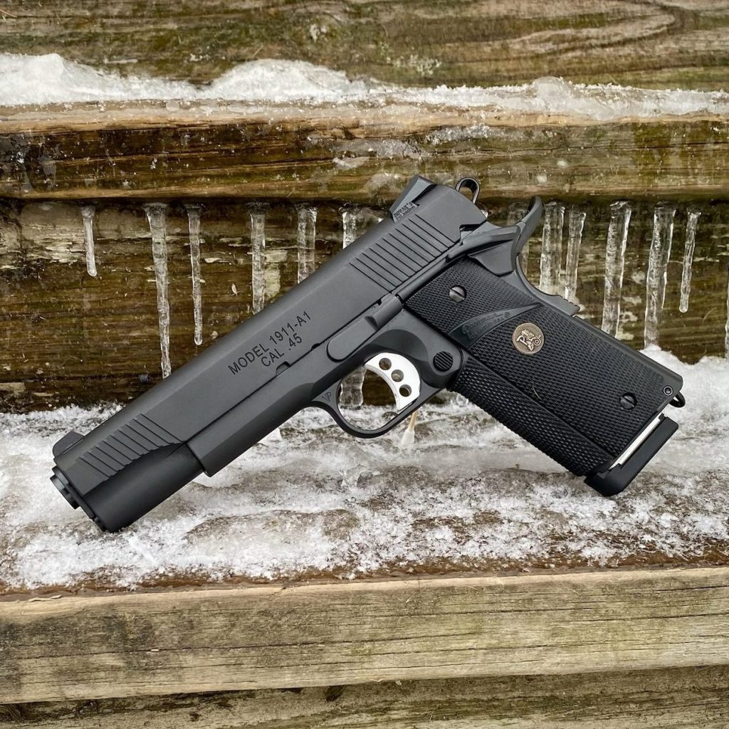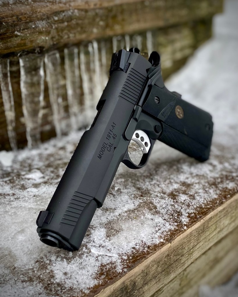 New build featuring a SA slide, Caspian MC frame, C&S FCG, and a BarSto NM barrel in a tactical match setup. It also features factory reproduction and an enhanced part selection over the traditional factory originals. It’s finished in black DLC with my “duty” surface prep for a rugged exterior and smooth functioning internals.